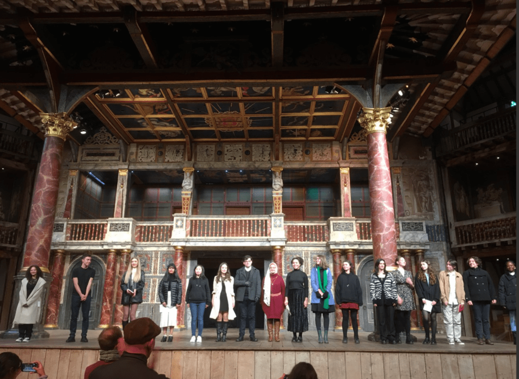 Workshop leader U.G. poets. I’m delighted to see all the hard work my students put into their creative pieces being delivered at Shakespeares Globe Theatre.